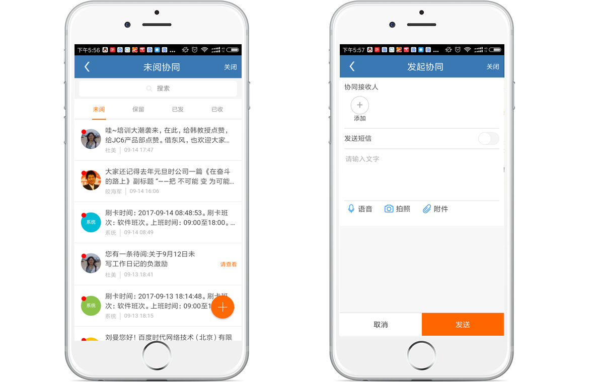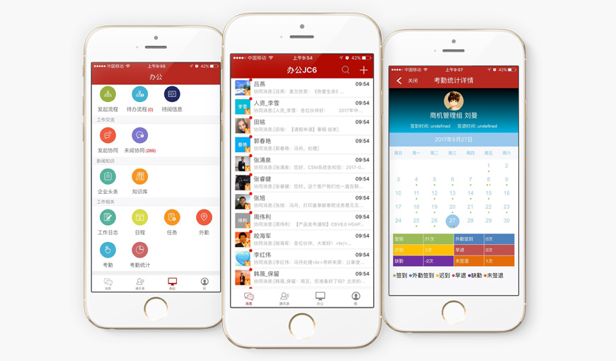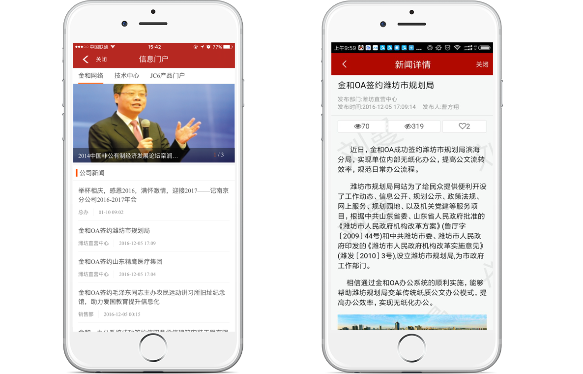 金和移动办公OA系统支持IOS、Android等主流操作的手机系统,集门户、寻呼、日记、通讯录、任务、流程(发起、待办、已办、待阅)、知识、日程、考勤、外勤、门户、驾驶舱等应用为一体。